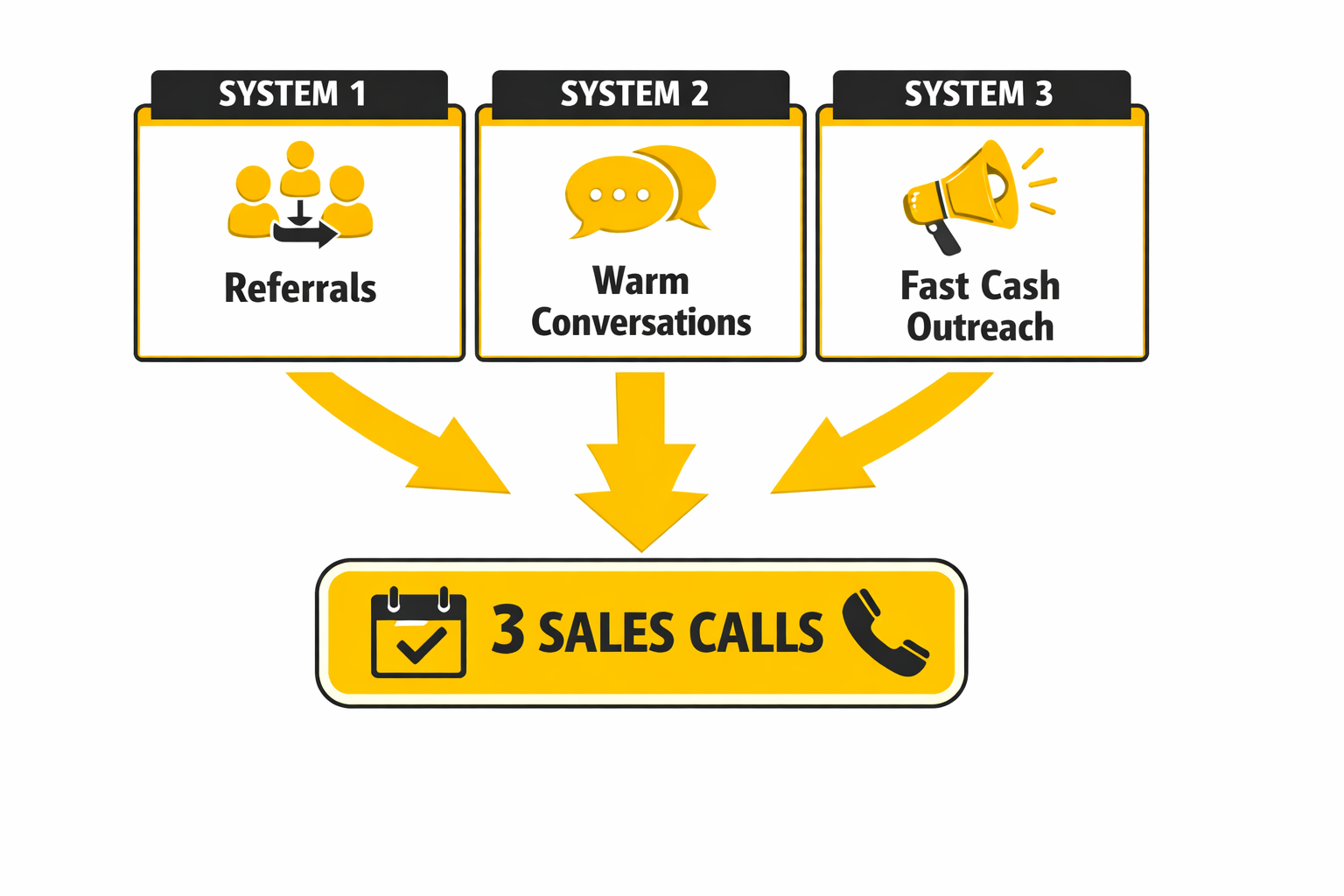 You’ll install three Fast Cash Systems designed to quickly generate sales calls and opportunities so you can create momentum in your consulting business.