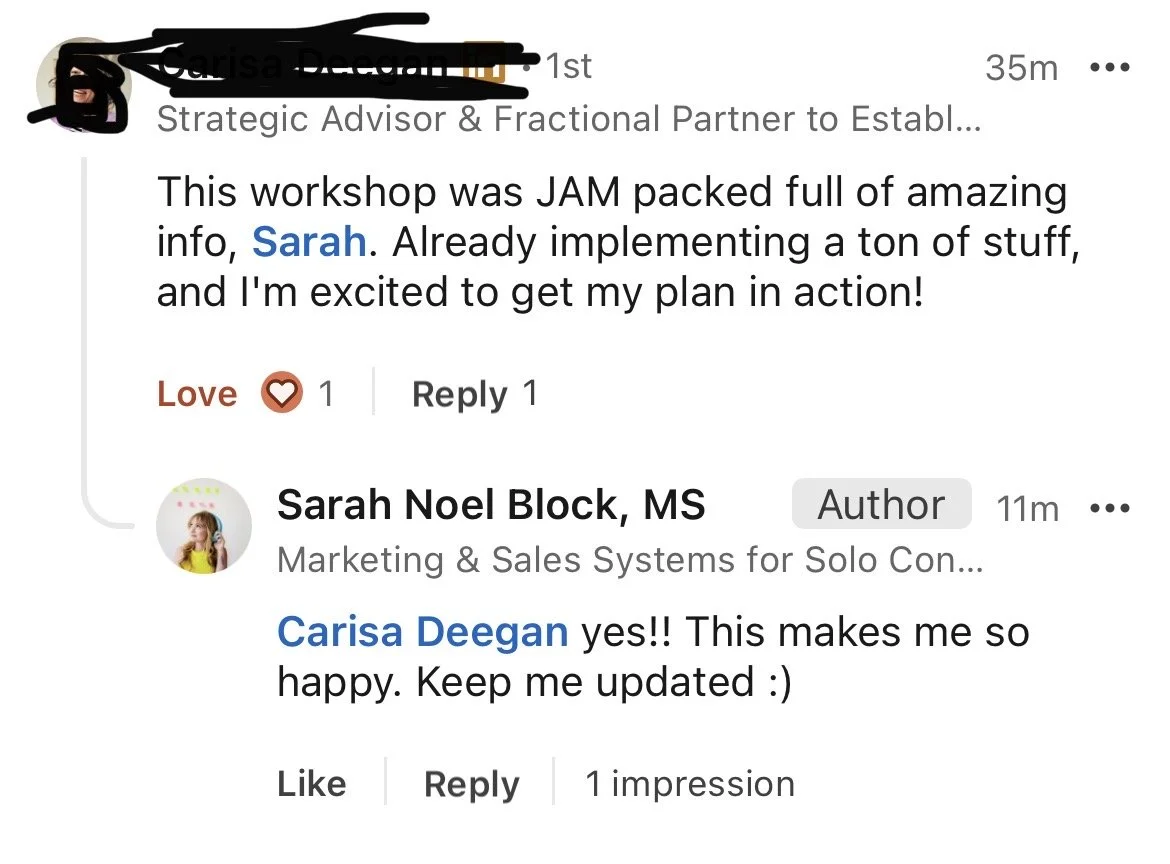 I help solo consultants get booked out without needing to be on LinkedIn all day, try every marketing tactic under the sun, or have an existing source for referrals that overfloweth.
